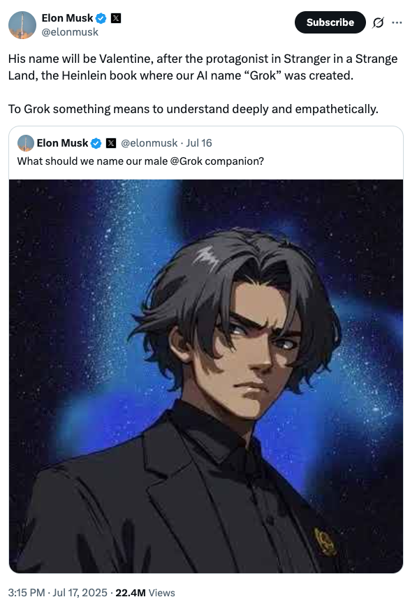 Grok“AI男友”即将上线:暮光+五十度灰设定,被指撞脸马斯克旧照